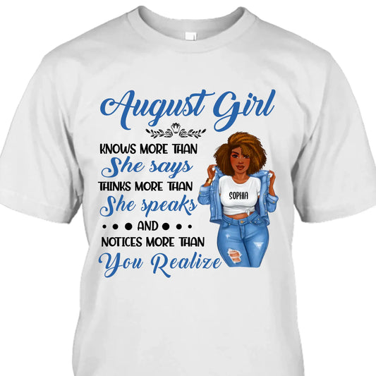 (30% OFF) - Personalized 12 Birth Month Girl - Knows More Than She Says - T-Shirt and Hoodie - Funny Gift For Birthday