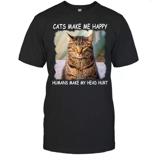(50% OFF) - Cats Make Me Happy - Personalized T-Shirt and Hoodie - Gift for Cat Lovers - Gift for Mother's Day, Father's Day, Christmas