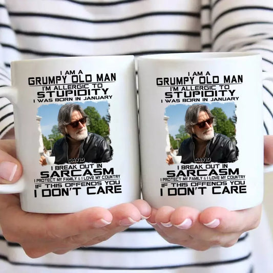 (50% OFF) - Custom Photo and 12 Birth Month Man Mug - Grumpy Old Man - Gift For Birthday