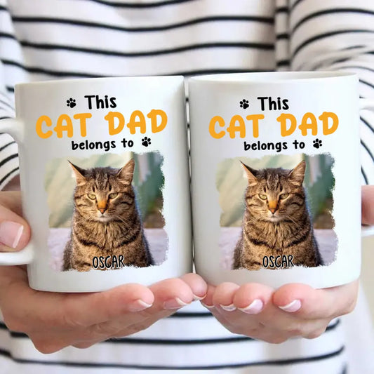 This Cat Dad Belong To - Personalized Cat Photo Mug - Custom Gift for Cat Lovers - Father's Day, Christmas Gift