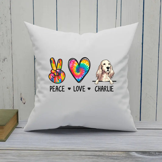 Peace Love Dog, Tie Dye - Personalized Dog Breeds Pillow - Custom Gift for Dog Lovers - Mother's Day, Father's Day, Christmas Gift