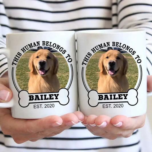 This Human Belongs To - Personalized Dog Photo Mug - Custom Gift for Dog Lovers - Mother's Day, Father's Day, Christmas Gift