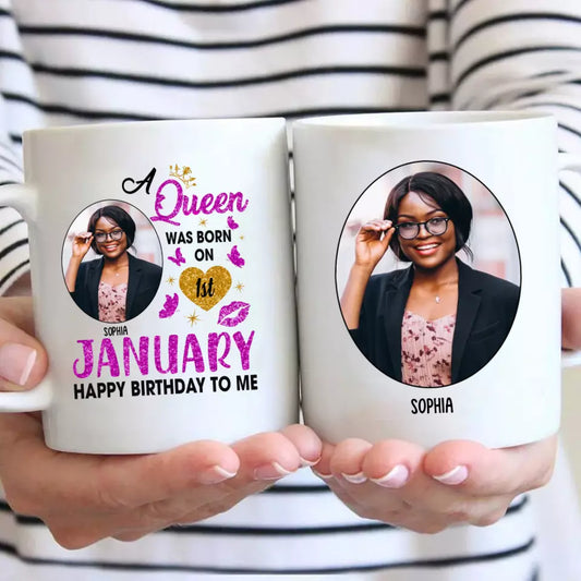 (30% OFF) - Queen Was Born In - Custom Photo and Birth Months Mug - Gift For Birthday