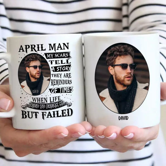 (30% OFF) - My Scars Tell A Story - Custom Photo and 12 Birth Month Man Mug - Gift For Birthday