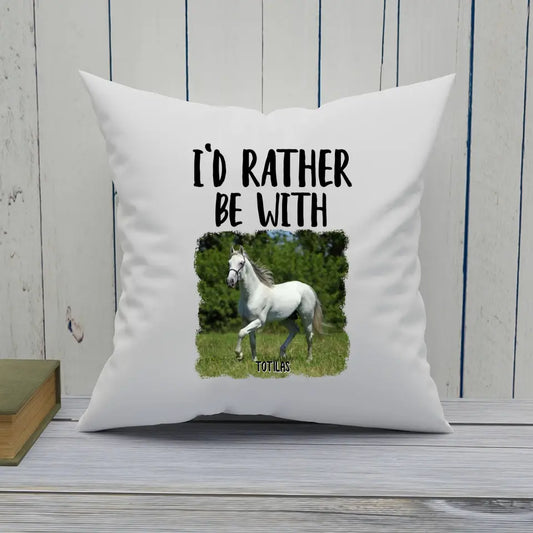 I'd Rather Be With Horse - Personalized Photo Pillow - Funny Gift for Horse Lovers - Mother's Day, Father's Day, Christmas Gift