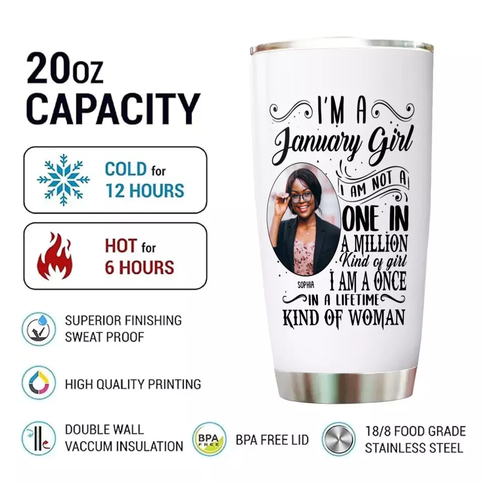 (20% OFF) - Custom Photo - Personalized 12 Birth Month Girl - I Am A Once - Custom Tumbler - Gift For Birthday